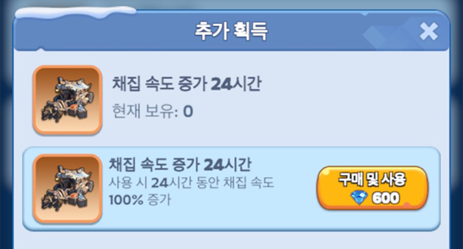 2. 채집 버프 활성화 하고 자원 채집 진행하는 것이 좋음. 가격대 저렴하여 부담없는 가격으로 버프 활성 가능