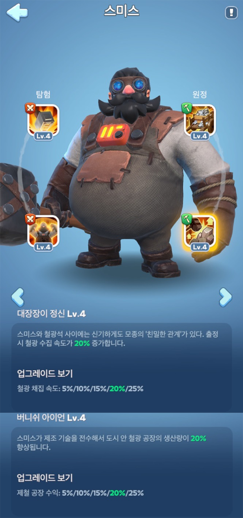 스미스 (대장장이 정신) = 출정 시 철광 수집 속도 n% 증가