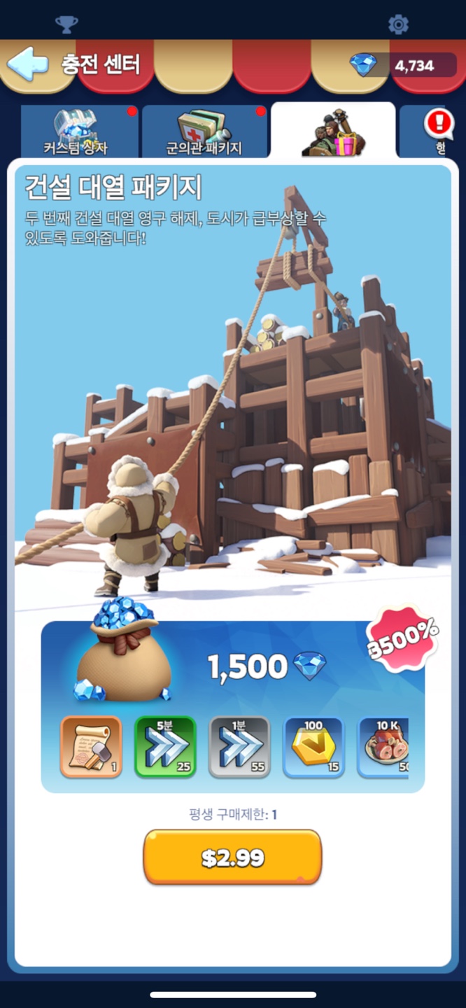 말 그대로 원래는 1개씩만 건설 가능한 것을 2개로 늘려주는 패키지이고, 다이아로도 2일씩 가능합니다.