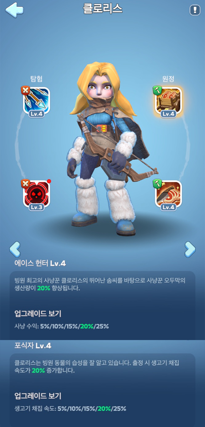 1. 각 영웅 별 자원 채집 스킬이 있어서, 해당 영웅으로 채집 포인트 출전 시키면 스킬 활성으로 시간 일부 단축 가능