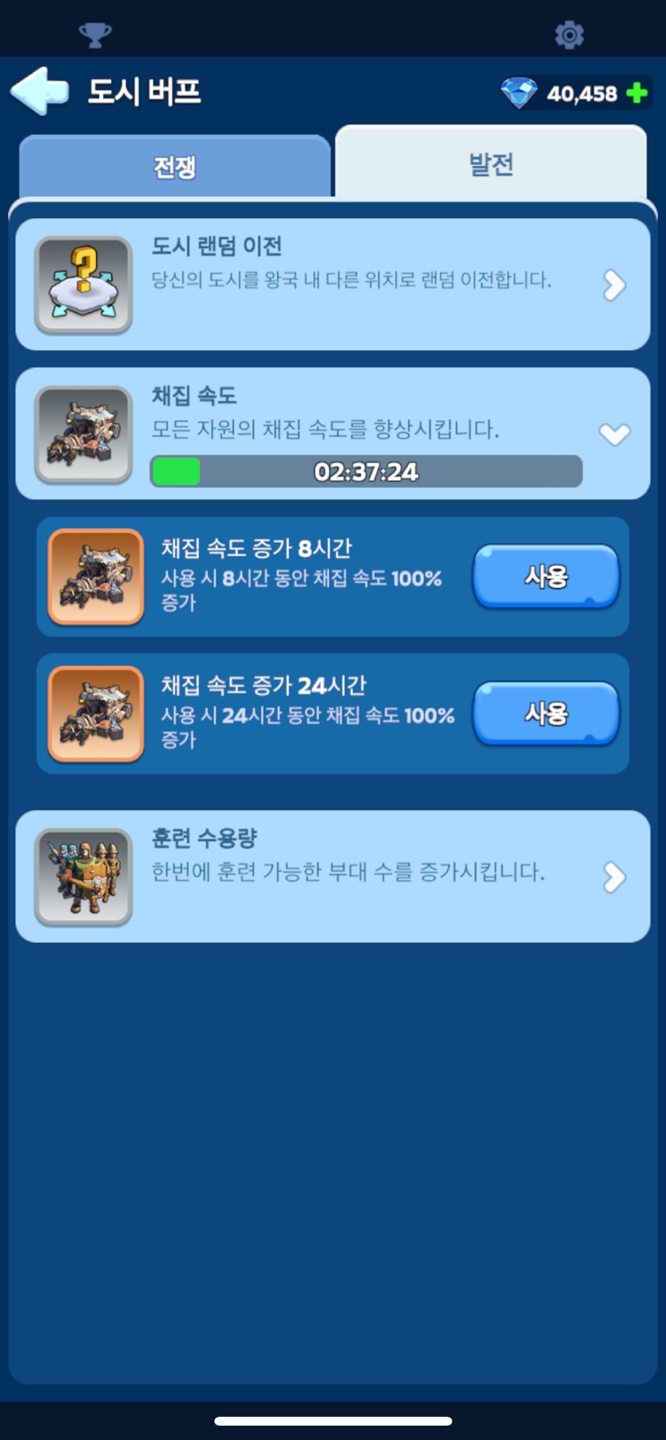 하지만 채집할 수 있는 자원이 많아질 수록 시간도 오래걸리고, 채집에 필요한 군사도 늘어나는 것은 당연합니다.
